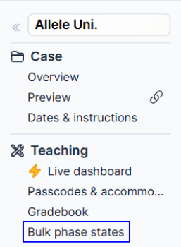The Bulk Phase State feature in Allele allows educators to efficiently update the state of any given phase for an entire class with a single action. This feature provides a structured overview of each phase within a case and allows educators to modify the state of phases for students or teams in real time. This guide explains how to navigate and use the Bulk Phase State feature effectively.