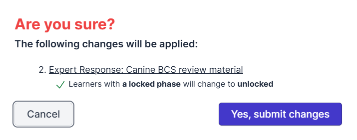 - Upon confirmation, the selected learners/teams will have their phase states updated accordingly.