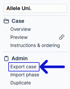 - Authors can select a case to export from their Allele dashboard, generating a file that includes all content within that case.