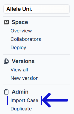 Recipients of the packaged case can import by clicking “Import Case” on the left-navigation pane of a space overview page: