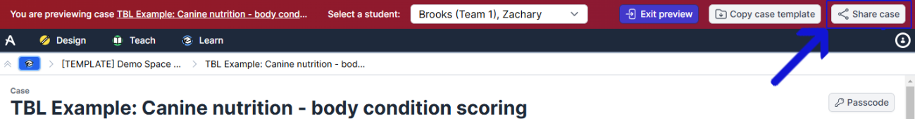 2.) Within Preview mode, the “Share case” button on the top right of the Preview menu