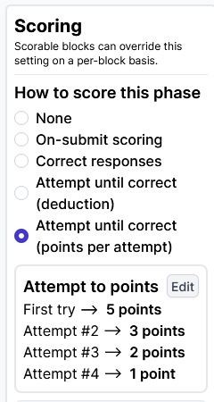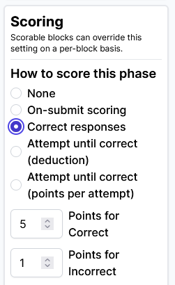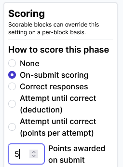 - Phase-wide scoring, which configures all scorable blocks to use the same scoring rules.