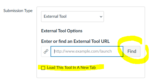 In the Assignment’s “Submission Type” configuration option, set it to External Tool.