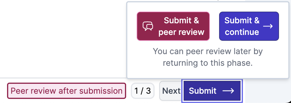 If you’re on a phase with peer review, you’ll see this message in the bottom next to the Submit button: