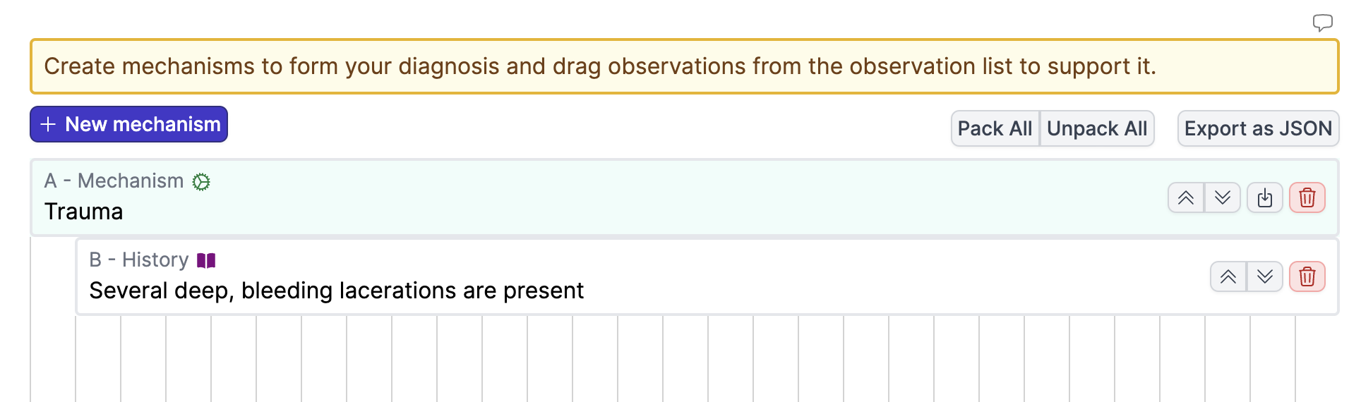 The new mechanism button creates a new top-level path item with type “Mechanism”. Mechanisms are typically parent path items that are supported by other mechanisms or observations dragged over from the observation list.