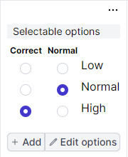 - Allows students to select from any number of analysis options. These options often are in reference to the test result and whether it is “Low”, “Normal”, or “High” based on the expected range. However, these options can be configured to any text value.